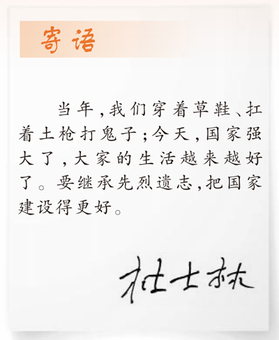 當(dāng)年盼望的好日子已成為眼下的日常生活,杜士林滿心欣慰更滿懷期待,“好日子是戰(zhàn)士們用鮮血換來(lái)的。我們要保持艱苦奮斗的精神,珍惜現(xiàn)在的美好生活?!倍攀苛终f(shuō)。