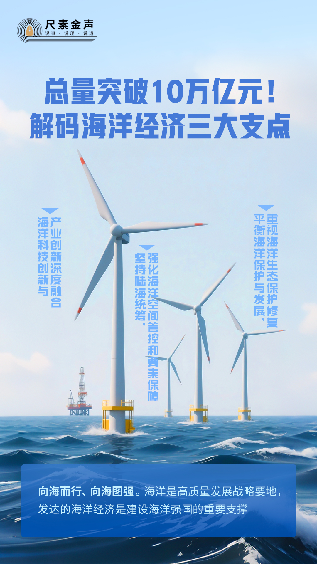 向海而行、向海圖強(qiáng)。海洋是高質(zhì)量發(fā)展戰(zhàn)略要地,發(fā)達(dá)的海洋經(jīng)濟(jì)是建設(shè)海洋強(qiáng)國(guó)的重要支撐。向海洋要生產(chǎn)力、求新增長(zhǎng)點(diǎn),我們要在守牢海洋生態(tài)安全邊界的前提下,持續(xù)優(yōu)化海洋空間布局,全面提高海洋資源利用效率,開辟新賽道、塑造新優(yōu)勢(shì),發(fā)展海洋經(jīng)濟(jì)必定大有可為、大有前途。