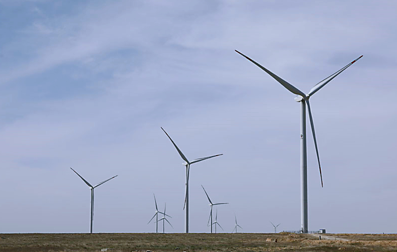 哈薩克斯坦札納塔斯拍攝的札納塔斯100兆瓦風(fēng)電項(xiàng)目風(fēng)機(jī)。圖片來源:新華社