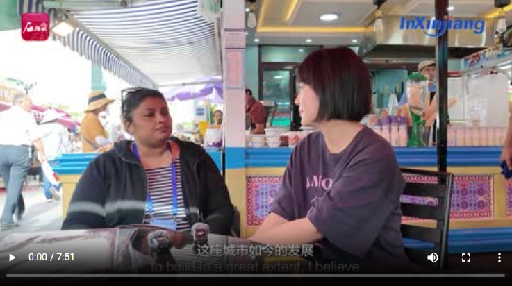 其間,斯里蘭卡《每日金融時報》副主編查魯米妮·德·席爾瓦和《InXinjiang》欄目記者一同開啟了體驗(yàn)新疆文化的一天。查魯米妮·德·席爾瓦表示,新疆處處生機(jī)勃勃,充滿了文化氣息。在來新疆之前,她的同事告訴她“新疆很漂亮,你一定會愛上新疆”。來到新疆之后,查魯米妮·德·席爾瓦表示,新疆的確讓她大開眼界,期待下次帶家人再來新疆。