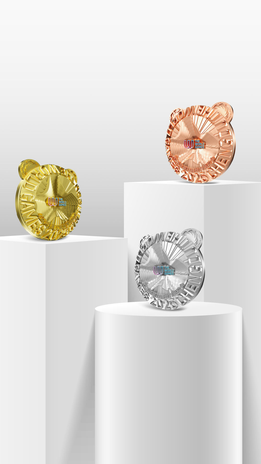 圖為成都世運會金、銀、銅牌效果圖。新華社發(fā)(成都世運會執(zhí)委會供圖)