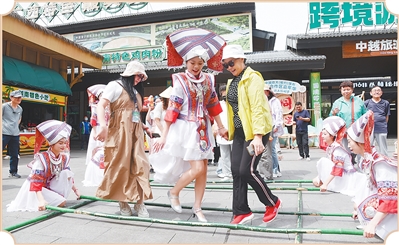 “前幾天,我?guī)Ъ胰巳ブ性降绿欤ò寮s)瀑布景區(qū)玩,游客很多。今天我們碩龍街舉行元春節(jié)活動(dòng),我又見到了那天幾位‘熟面孔’游客。他們玩得開心,我們也很高興?!碑?dāng)?shù)厝饲裼烂髟谟^看元春節(jié)民俗文化表演時(shí)說。