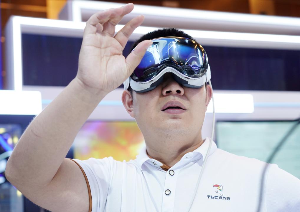 7月2日,參觀者在2025全球數(shù)字經(jīng)濟(jì)大會(huì)數(shù)字經(jīng)濟(jì)國際交流合作體驗(yàn)區(qū)體驗(yàn)一款MR混合現(xiàn)實(shí)設(shè)備。新華社記者 張晨霖 攝