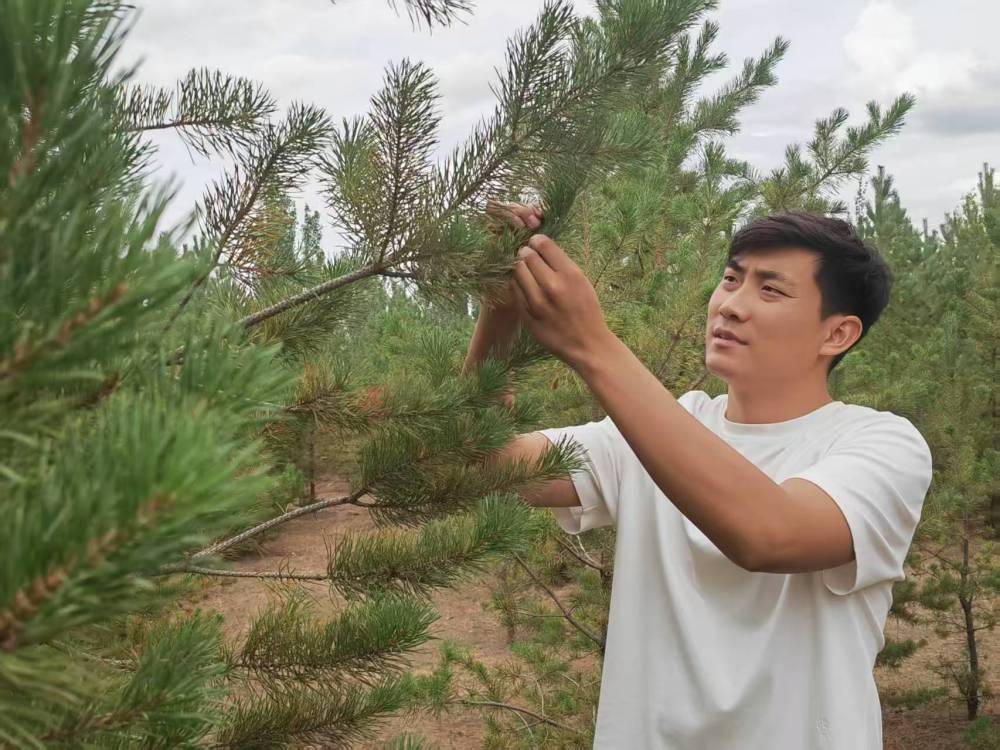 2017年,在爺爺?shù)膸ьI(lǐng)下,石健陽正式投身植綠事業(yè)?!斑^去沙害嚴(yán)重,老一輩治沙人最迫切的是要定住風(fēng)沙,讓地面先綠起來,所以當(dāng)時的樹種主要是生長快的楊樹?!笔£栒f,“幾十年過去,楊樹林老化嚴(yán)重,出現(xiàn)大面積枯死的情況。我們現(xiàn)在陸續(xù)對老化的林地進(jìn)行樹種更換,補(bǔ)種四季常青、生命周期更長的樟子松,目前已經(jīng)補(bǔ)種了5萬畝?!?/p>