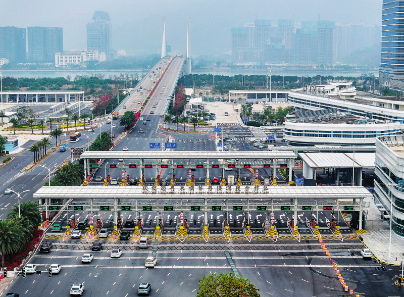 去年3月,橫琴口岸客貨車“聯(lián)合一站式”車道啟用,橫琴邊檢、橫琴海關(guān)以及澳門海關(guān)、澳門治安警察局和澳門衛(wèi)生局粵澳5家查驗(yàn)單位對出入境車輛實(shí)行“一次排隊(duì)、集中采集、聯(lián)合驗(yàn)放”,車輛的通關(guān)時(shí)長從“兩地兩檢”8分鐘,縮短為平均約100秒。