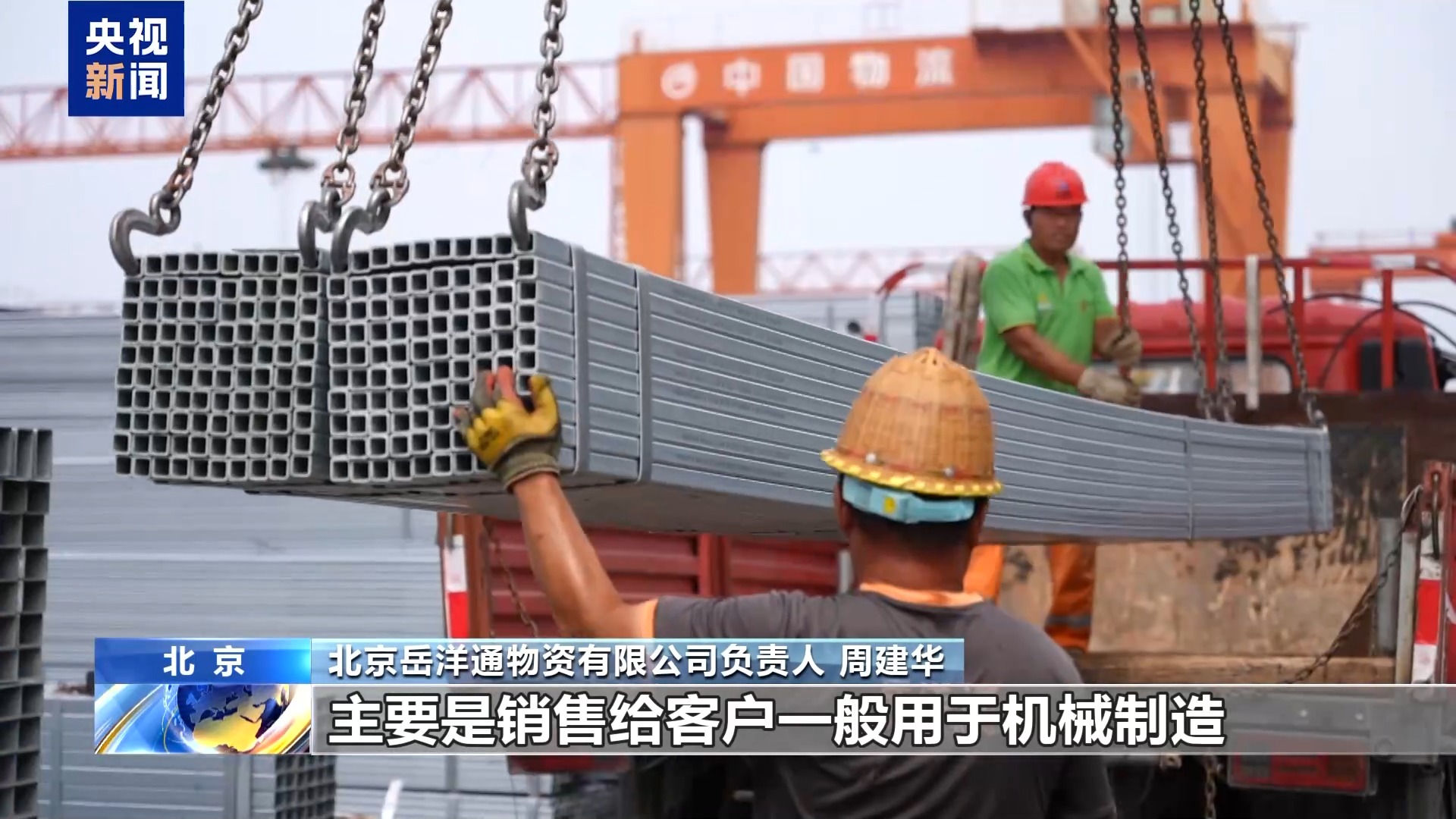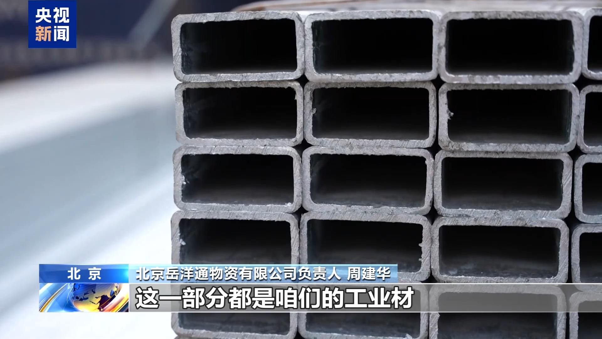 在北京的這家鋼貿(mào)企業(yè),記者看到前來(lái)提貨的卡車排成了隊(duì)。負(fù)責(zé)人告訴記者,眼前這些正在裝車的長(zhǎng)方形的鋼管就是常見的工業(yè)用鋼材。