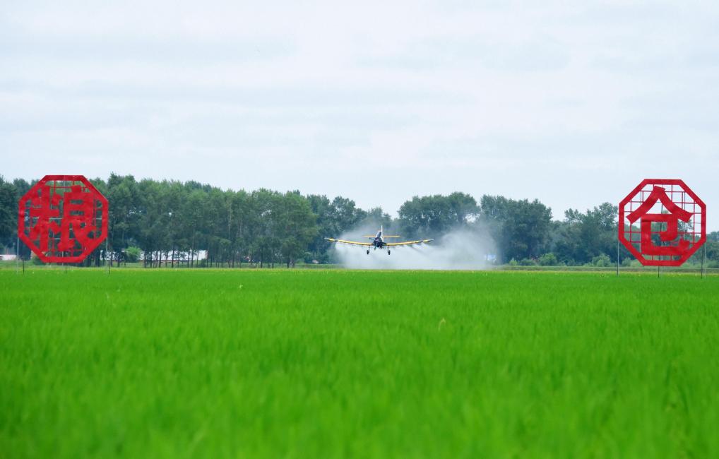 7月1日,在北大荒集團(tuán)黑龍江綏濱農(nóng)場(chǎng)有限公司龍泉管理區(qū),一架農(nóng)用飛機(jī)進(jìn)行航化作業(yè)(無人機(jī)照片)。新華社發(fā)(李興攝)