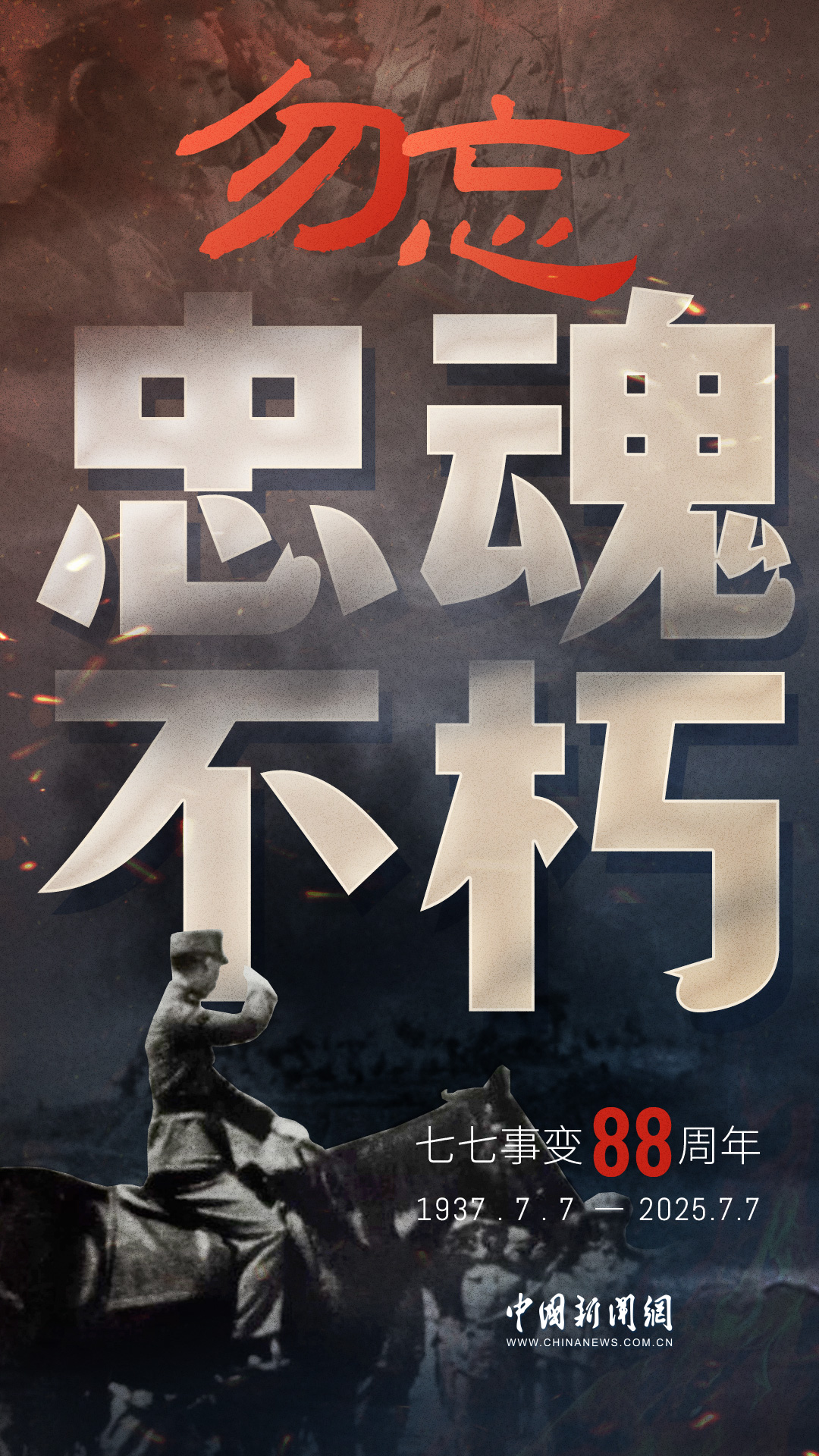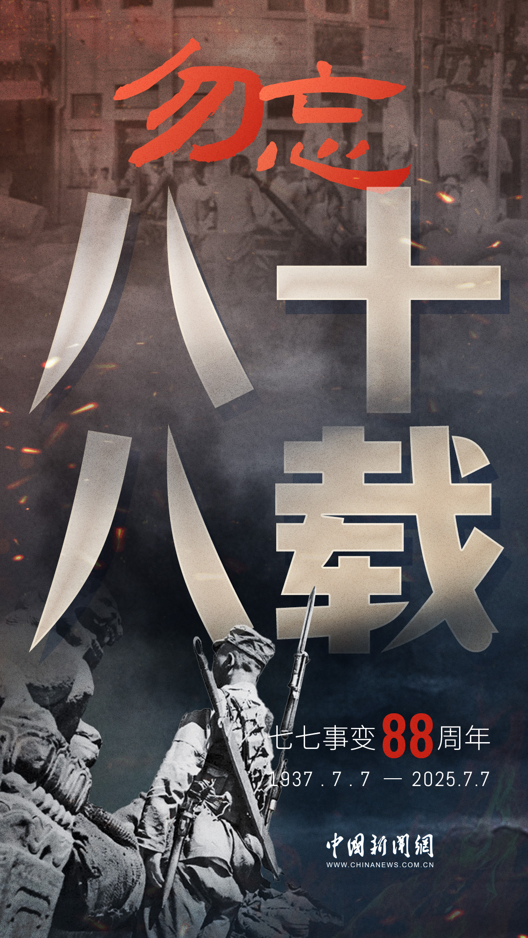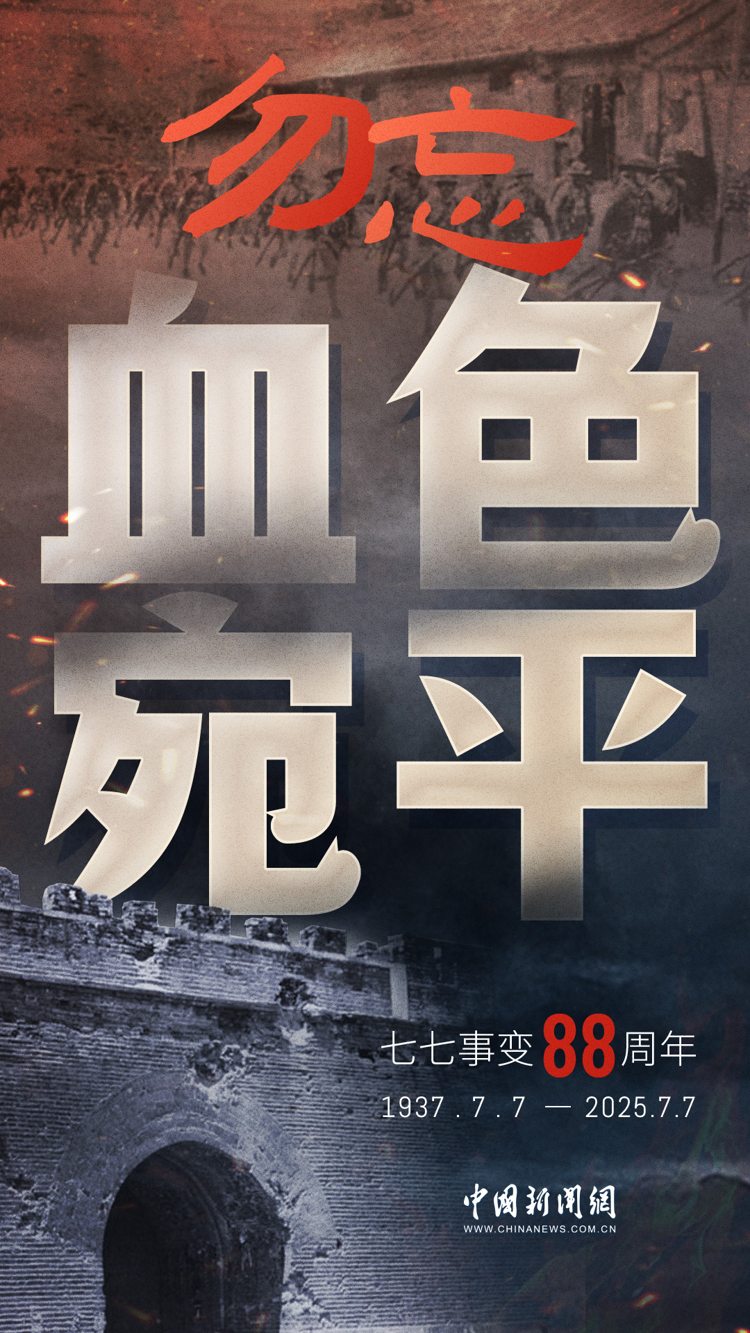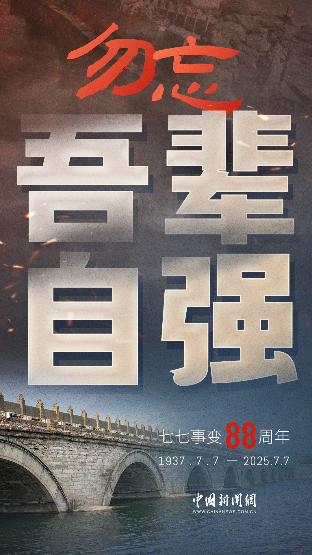 1937年7月7日,盧溝橋的槍聲撕裂長(zhǎng)夜,中華兒女赴湯蹈火,以血肉之軀筑起御敵長(zhǎng)城。88載歲月流轉(zhuǎn),硝煙雖散,彈痕猶在,那段浸透血淚的歷史,是刻在民族記憶里永不褪色的烙印。今日山河錦繡,國(guó)泰民安,正是先烈用生命換來(lái)的盛世。七七事變88周年,致敬英烈,銘記國(guó)殤,吾輩自強(qiáng),護(hù)山河無(wú)恙!