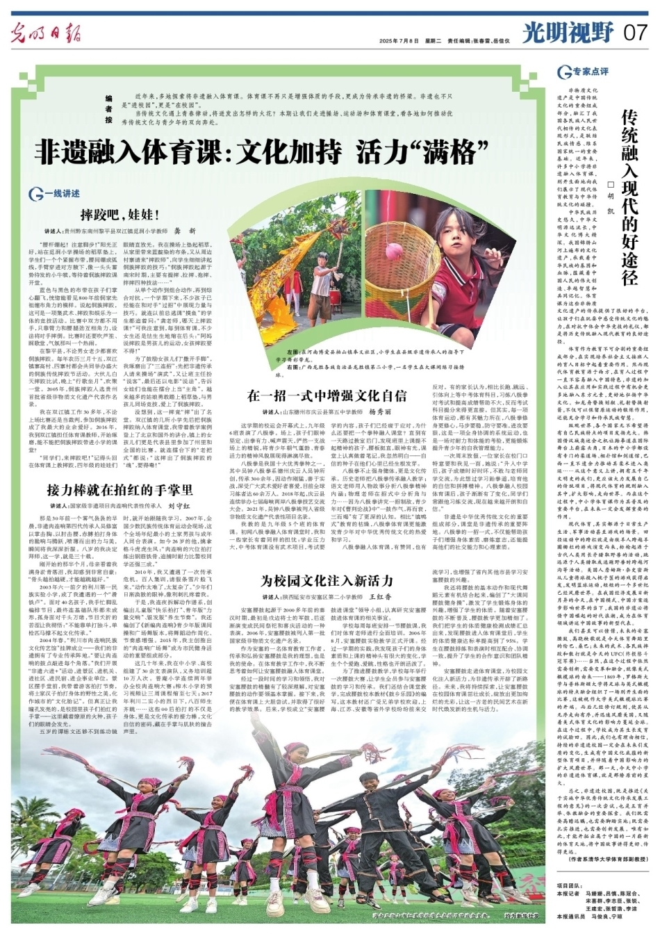 近年來,多地探索將非遺融入體育課。體育課不再只是增強(qiáng)體質(zhì)的手段,更成為傳承非遺的橋梁。非遺也不只是“進(jìn)校園”,更是“在校園”。