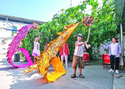 在河南博愛縣柏山鎮(zhèn)奉義社區(qū),小學(xué)生在縣級(jí)非遺傳承人的指導(dǎo)下學(xué)習(xí)舞彩帶龍。新華社發(fā)