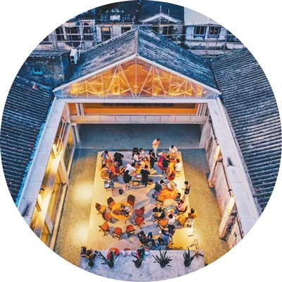 2015年,李繼津和合伙人看上了塘口舊墟兩處建筑,“原先是舊糧倉周邊的五金廠、鐘表廠,雖然建筑很舊,但很有設(shè)計(jì)感,而且舊墟與周圍的村子距離很近,有做社區(qū)改造的潛力?!闭f干就干,舊工廠逐漸被改造為時(shí)尚的青年社區(qū)空間——“塘口空間”,餐廳、青年旅舍、劇場、活動空間等一應(yīng)俱全,舊工廠里原有的一些制造機(jī)械作為歷史記憶的“載體”也被保留下來?!敖ㄖ荒苊撾x鄉(xiāng)村?!崩罾^津說。