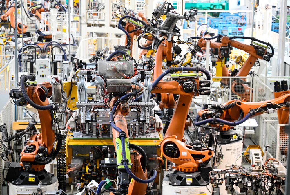 7月7日,機械臂等自動化生產(chǎn)設備在天津經(jīng)濟技術開發(fā)區(qū)一汽-大眾華北基地焊裝車間作業(yè)。新華社記者趙子碩 攝