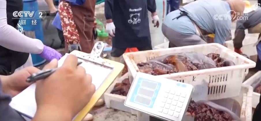 在南漁港碼頭,漁船剛一停靠,漁民們便爭(zhēng)分奪秒地卸貨、稱重。今年,在煙臺(tái)龍口海蜇專項(xiàng)捕撈期,共有41艘漁船成功辦理了海蜇專項(xiàng)捕撈許可證,得以出海作業(yè)。