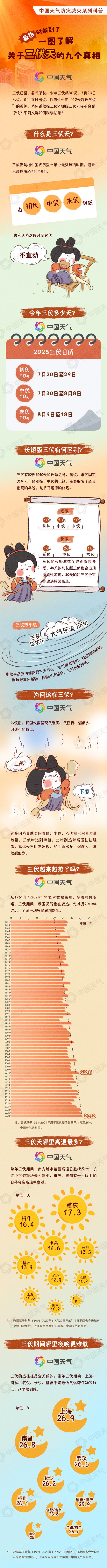 今天(7月20日),我國正式入伏,意味著一年中最熱的時(shí)候來了。今年為30天短版三伏,打破了近十年“40天超長三伏”的慣例。為何說熱在三伏?短板三伏天會(huì)不會(huì)更涼快?不同人群如何科學(xué)防暑?中國天氣網(wǎng)推出防災(zāi)減災(zāi)系列科普,一圖了解關(guān)于三伏天的9個(gè)真相。