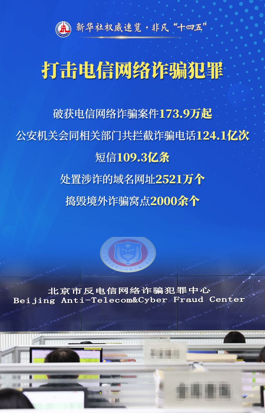 破獲電信網(wǎng)絡(luò)詐騙案件173.9萬起、推動建立全國統(tǒng)一的人口登記管理制度、推出60多項改革新措施……23日舉行的“高質(zhì)量完成‘十四五’規(guī)劃”新聞發(fā)布會上,公安部介紹了以高水平安全護航“十四五”規(guī)劃高質(zhì)量完成有關(guān)情況。通過這組海報,一起來看看。