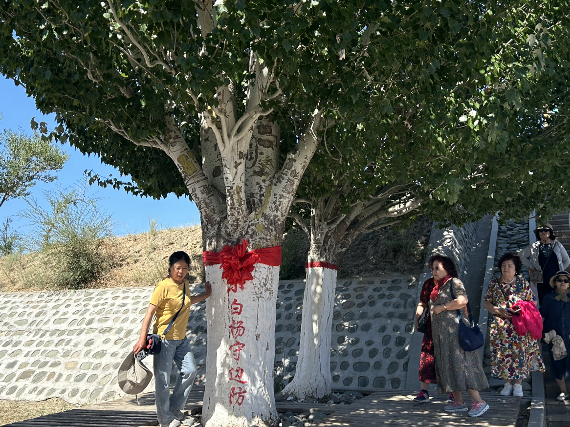“當年這里除了鐵絲網(wǎng)就是石頭山?!币娮C哨所變遷的兵團職工蔣晶華回憶,官兵們住地窩子、啃干馕,卻始終像那棵白楊一樣“向下扎根”。如今,第二代哨樓旁的白楊樹已成參天大樹,樹干上“守衛(wèi)祖國”的刻字仍清晰可辨。