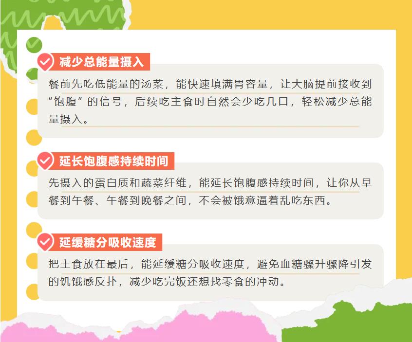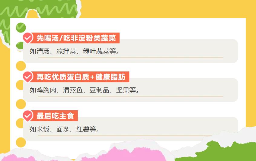 你知道嗎?吃飯時(shí)先吃什么、后吃什么,其實(shí)對(duì)健康影響不?。『侠淼娘嬍稠樞?,能幫助我們更好地消化吸收、穩(wěn)定血糖,還能控制體重。