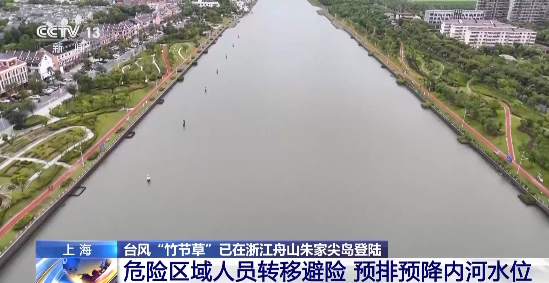 總臺記者 張寄予:為應對臺風“竹節(jié)草”,上海市奉賢區(qū)金匯港南閘會進行開閘排水工作。這里一邊是內(nèi)河,一邊是杭州灣,當海水落潮的時候,海水水平面低于內(nèi)河水平面時,就會開啟閘口,利用水位落差自然排水。