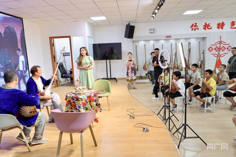 7月27日,記者跟隨“石榴花開 籽籽同心鑄牢中華民族共同體意識(shí)”網(wǎng)絡(luò)主題活動(dòng),走進(jìn)新疆阿克蘇地區(qū)新和縣加依村。在自治區(qū)級(jí)樂器傳承人努爾東·司馬義的院落里,都塔爾琴弦調(diào)音聲交織成曲,身著民族服裝的當(dāng)?shù)厮嚾苏S著琴弦躍動(dòng),與游客即興共舞。