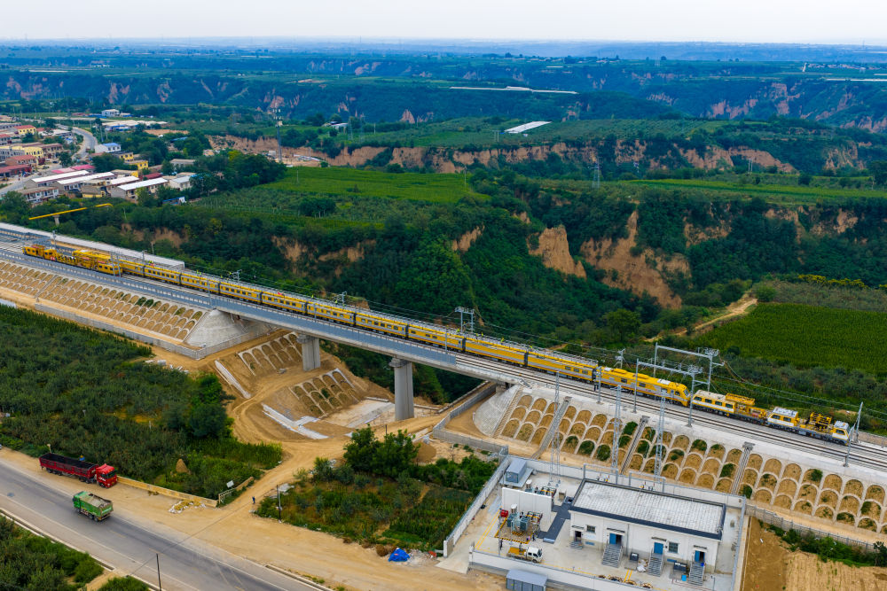 西延高鐵正在有序推進(jìn)電氣化設(shè)備的精調(diào)。(中國(guó)鐵路西安局集團(tuán)有限公司供圖)