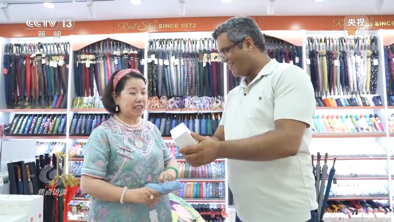 張吉英是義烏小商品市場(chǎng)的一位傘具經(jīng)營(yíng)戶。今年,她店鋪里一款經(jīng)過(guò)創(chuàng)新設(shè)計(jì)的防曬傘,在國(guó)外掀起了一股流行風(fēng)潮,與國(guó)內(nèi)消費(fèi)者追求防曬傘小巧輕便不同,國(guó)外客戶更偏愛(ài)大尺寸款式。比如在中東地區(qū),人們喜歡雨傘里面能噴水霧的款式,以追求更好的降溫體驗(yàn)。