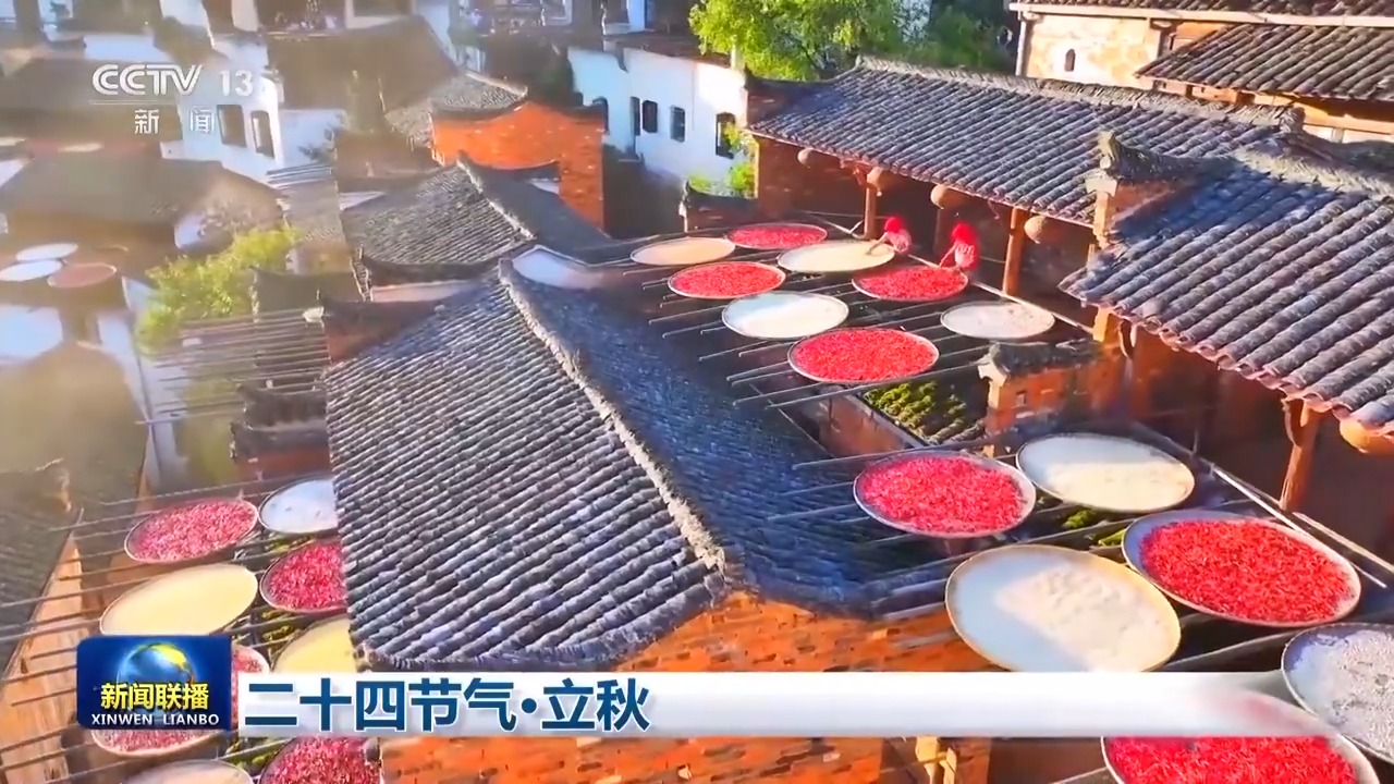 立秋至,曬秋忙。人們利用房前屋后晾曬農(nóng)作物,色彩斑斕,既是風(fēng)俗,也是風(fēng)景。