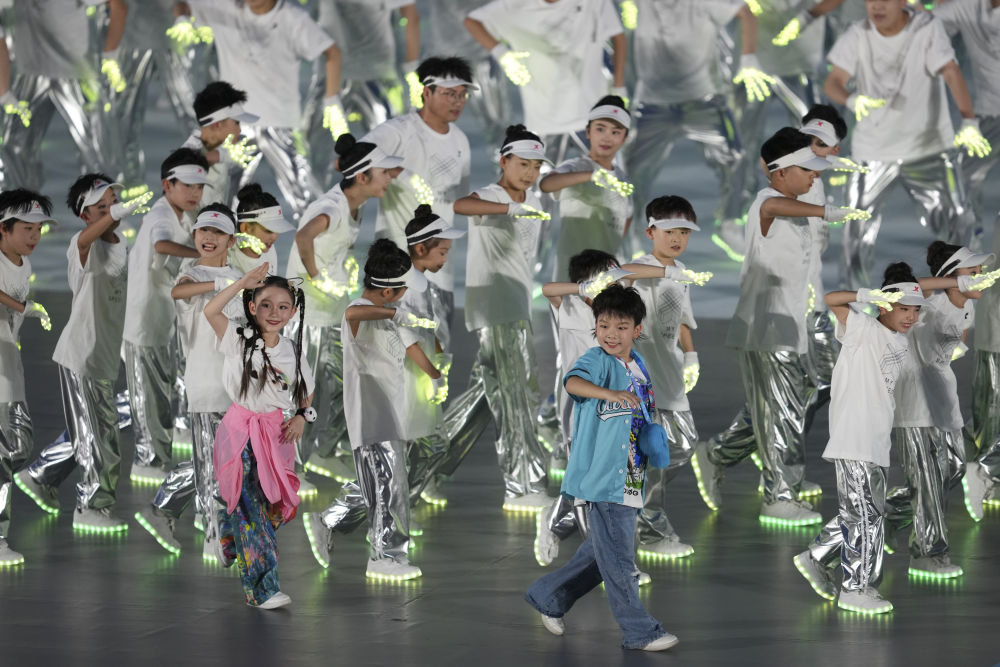 奧運會游泳冠軍汪順、潘展樂、張雨霏,以及首屆世運會羽毛球冠軍孫志安、中國首位霹靂舞奧運獎牌獲得者劉清漪等多名運動健兒,擔任開幕式執(zhí)旗手,在現(xiàn)場掀起高潮。