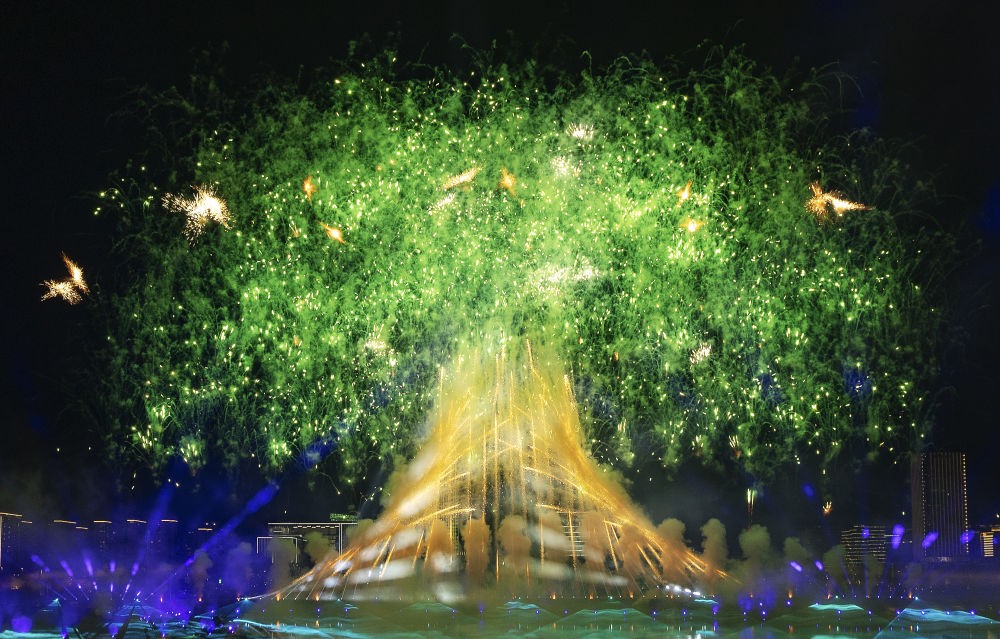 夜空呈現(xiàn)篆書的“成都”焰火