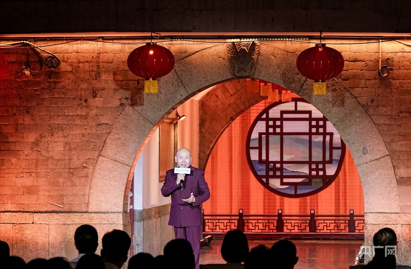 孟廣祿在古文化街戲樓前唱響《中華瑰寶》(央廣網(wǎng)記者 張強(qiáng) 攝)