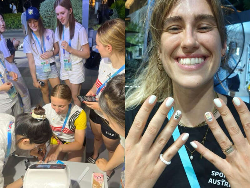 美甲機(jī)器人5秒噴繪出的世運(yùn)會(huì)會(huì)徽與熊貓紋樣,引得國(guó)外運(yùn)動(dòng)員前來(lái)體驗(yàn)。成都世運(yùn)會(huì)執(zhí)委會(huì)供圖