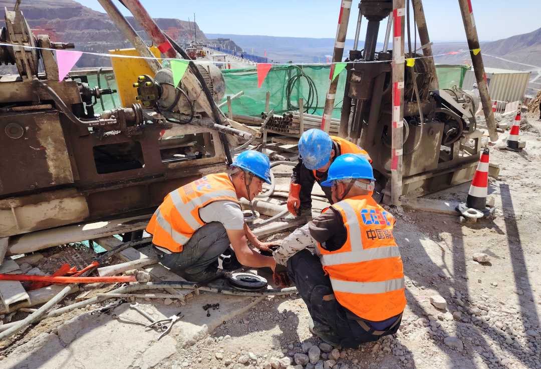 大石峽水利樞紐工程大壩右岸,工人正在1707米的海拔高度上維修灌漿設備。劉沛愷攝