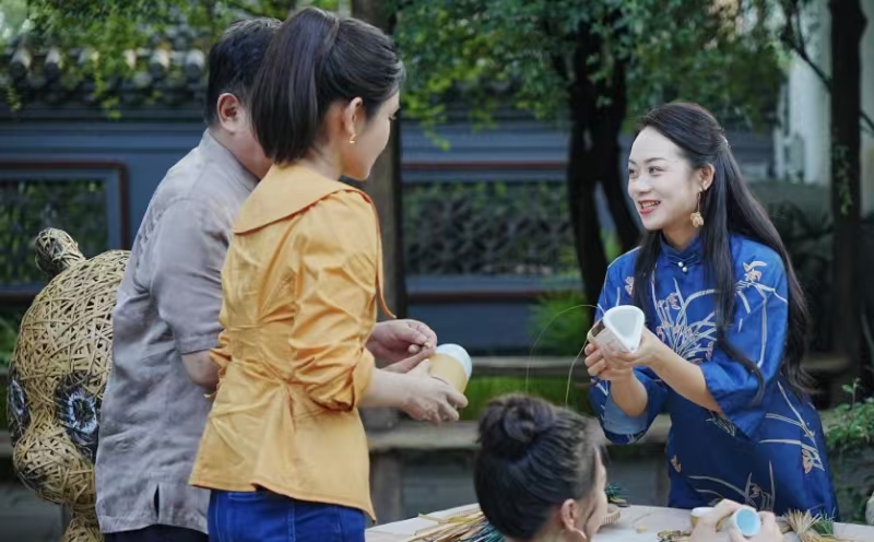 當然,文旅發(fā)展成效如何,最直接的體現(xiàn)是能否讓村民受益。村民倪龍2023年返鄉(xiāng),與妻子共同辦起民宿“竹里香居”。竹編屏風、竹制燈罩,將民宿裝點得古樸雅致?!盀榱藢⒅裎幕捅镜卮ㄎ髁直P的民俗生活緊密結(jié)合,我們特意設計了這種民宿風格。如果竹編藝人需要展示作品,我們也會提供場地,畢竟民宿也是村里的‘文化名片’?!蹦啐堈f。