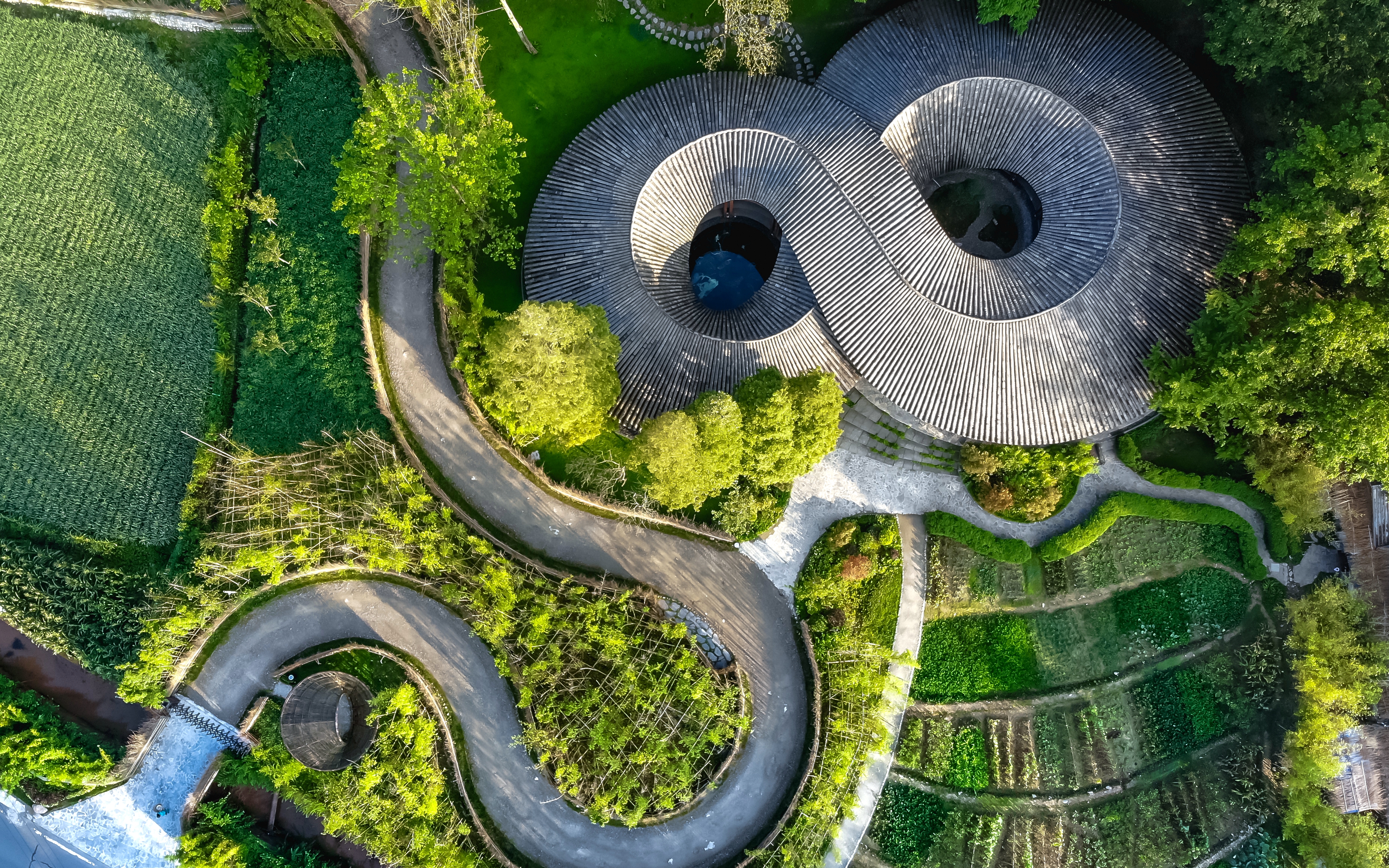 日暮時分,竹藝村的地標性建筑“竹里”被覆上一層金輝。從空中俯瞰這個坐落在竹藝村的“網(wǎng)紅”建筑,形狀如同數(shù)學符號中代表無窮的“∞”。竹文化無窮,竹編路無限,讓人不禁期待竹藝村更加精彩的未來……