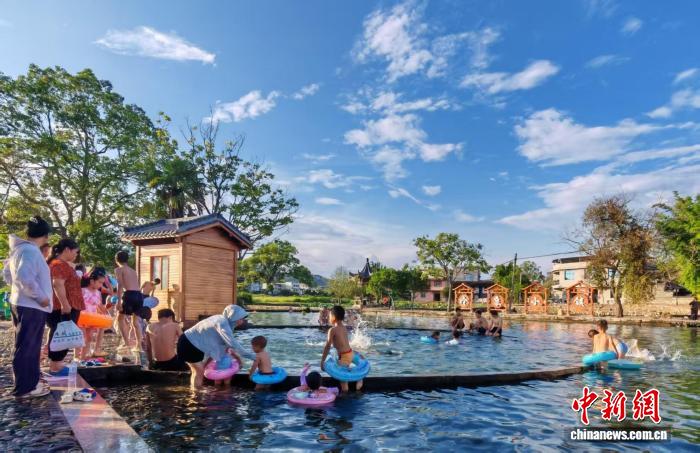 位于福建省清流縣李家鄉(xiāng)鮮水村的“冷泉小鎮(zhèn)”景區(qū)游人如織。不少村民推著手推車在景區(qū)穿梭售賣特色零食,與水池中人們的嬉戲畫面相映成趣,構(gòu)成一幅動(dòng)靜相宜、生活氣息濃郁的民俗畫卷。