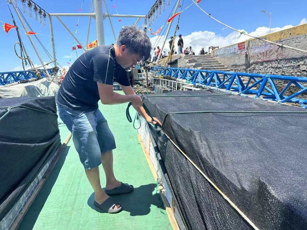 8月16日上午,閩惠漁00177號船長陳聰莆進(jìn)行開漁前的最后準(zhǔn)備工作。新華社記者 龐夢霞 攝