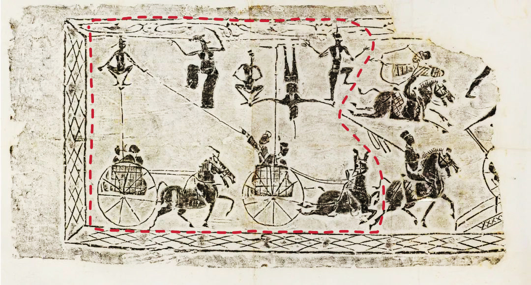 斜索戲車畫像磚以線面結(jié)合的手法分層敘事