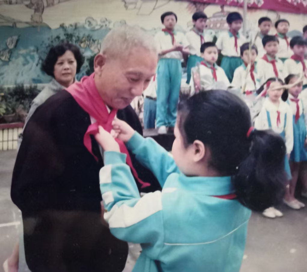 ↑在鄱陽(yáng)街小學(xué)演講活動(dòng)期間,學(xué)生為李德富系紅領(lǐng)巾
