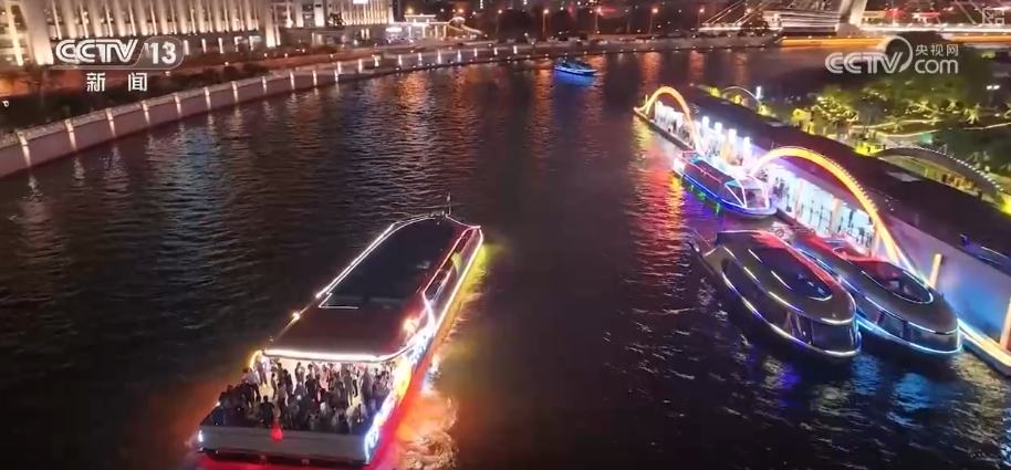 除了博物館內(nèi)的精品文物給大家?guī)砹宋幕⒀?,入夜后的海河璀璨絢麗,海河之夜美景再升級。沿線建筑、橋梁及碼頭的燈光景觀全面提升,飽覽海河兩岸美景的海河游船也打造了全新體驗(yàn)。