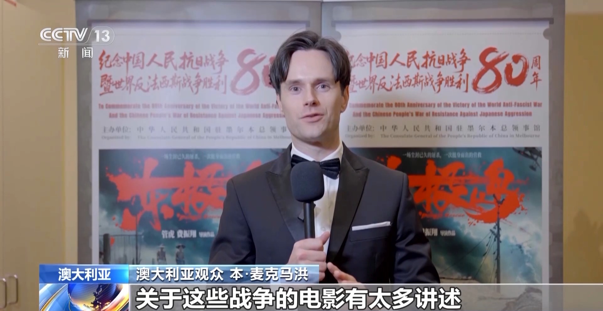 澳大利亞觀眾 本·麥克馬洪:關于這些戰(zhàn)爭的電影有太多講述,尤其是在澳大利亞。我們聽到的大多是歐洲視角下的故事,我之前對中國的抗戰(zhàn)歷史不太了解。