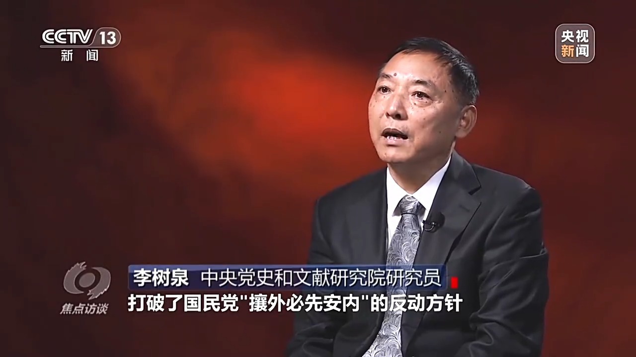 中央黨史和文獻(xiàn)研究院研究員 李樹泉:首先在政治上打破了國民黨“攘外必先安內(nèi)”的反動(dòng)方針,形成了“地?zé)o分南北,人無分老幼”全國抗戰(zhàn)的局面,在軍事上就形成了敵后戰(zhàn)場(chǎng)和正面戰(zhàn)場(chǎng)的戰(zhàn)略配合,這樣就陷日本侵略者于人民戰(zhàn)爭(zhēng)的汪洋大海。
