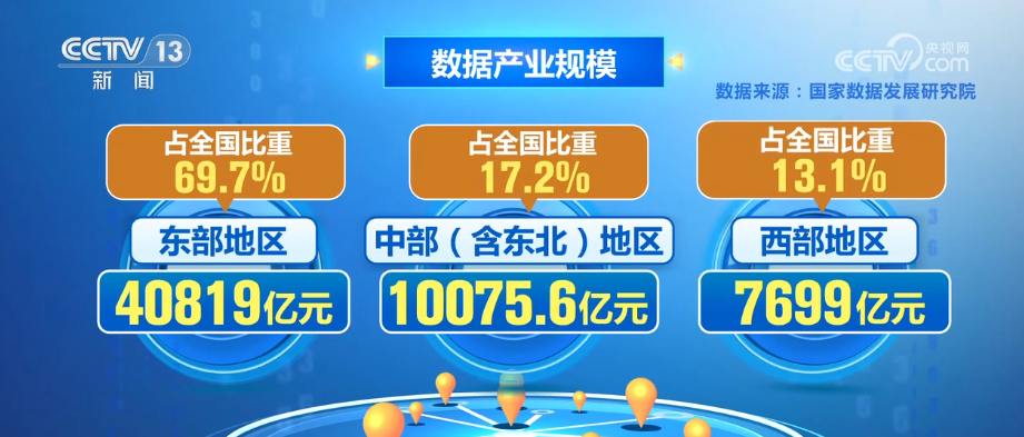 我國(guó)數(shù)據(jù)產(chǎn)業(yè)呈現(xiàn)梯次分布格局,東部、中部(含東北)和西部地區(qū)的數(shù)據(jù)產(chǎn)業(yè)規(guī)模分別為40819億元、10075.6億元和7699億元,占全國(guó)比重分別為69.7%、17.2%和13.1%。