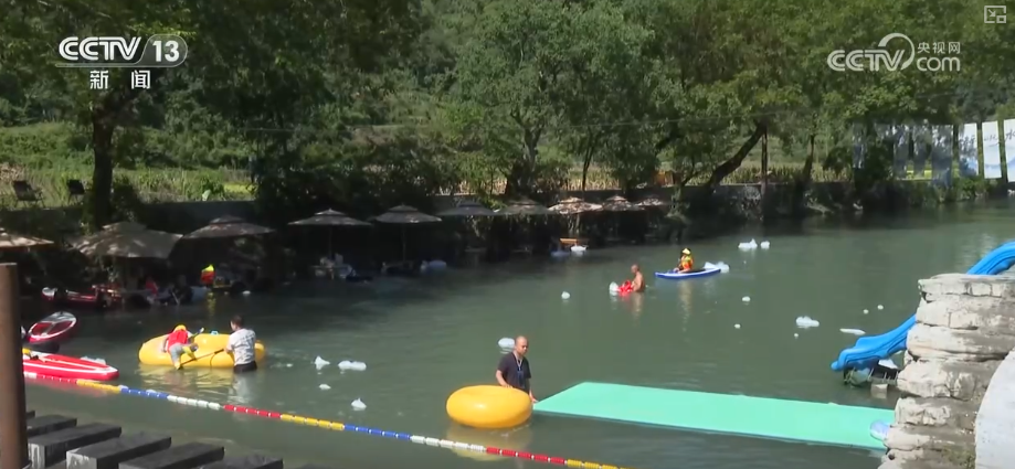 在湖南吉首,洽比河旅游公路串聯(lián)起深山中的9個(gè)傳統(tǒng)苗寨。游客們自駕而來(lái),沿河溯溪露營(yíng),體驗(yàn)水上項(xiàng)目,或躲進(jìn)竹椅遮陽(yáng)傘下,感受清涼愜意。