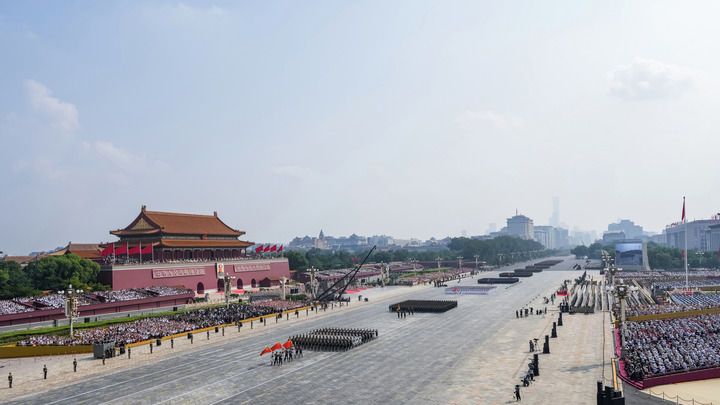 ↑9月3日,紀(jì)念中國(guó)人民抗日戰(zhàn)爭(zhēng)暨世界反法西斯戰(zhàn)爭(zhēng)勝利80周年大會(huì)在北京隆重舉行。這是徒步方隊(duì)接受檢閱。