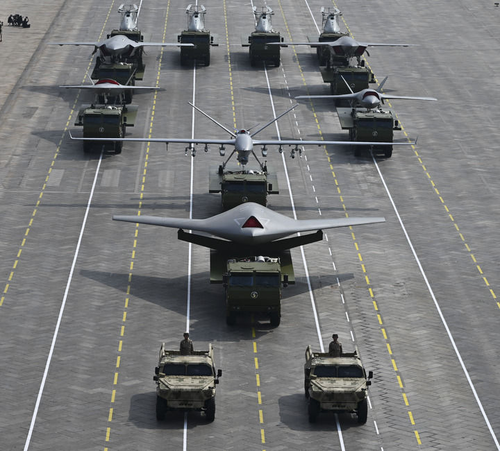 ↑9月3日,紀(jì)念中國(guó)人民抗日戰(zhàn)爭(zhēng)暨世界反法西斯戰(zhàn)爭(zhēng)勝利80周年大會(huì)在北京隆重舉行。這是空中無(wú)人作戰(zhàn)方隊(duì)接受檢閱。