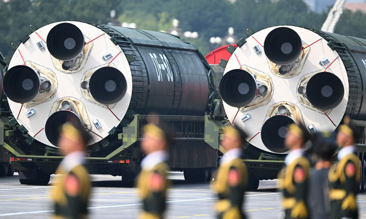 ↑9月3日,紀(jì)念中國(guó)人民抗日戰(zhàn)爭(zhēng)暨世界反法西斯戰(zhàn)爭(zhēng)勝利80周年大會(huì)在北京隆重舉行。這是核導(dǎo)彈第二方隊(duì)接受檢閱。