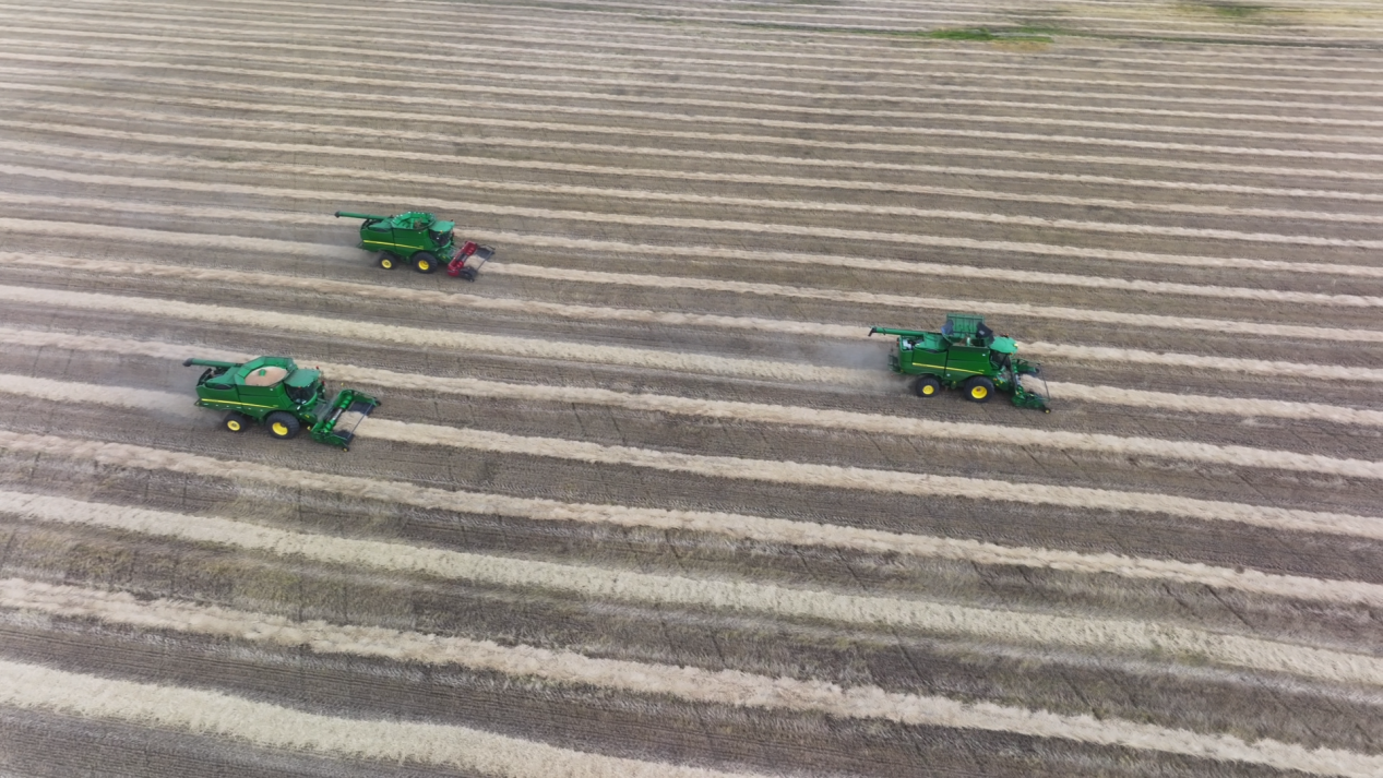 收割機有序作業(yè)中(呼瑪縣融媒體中心供圖)