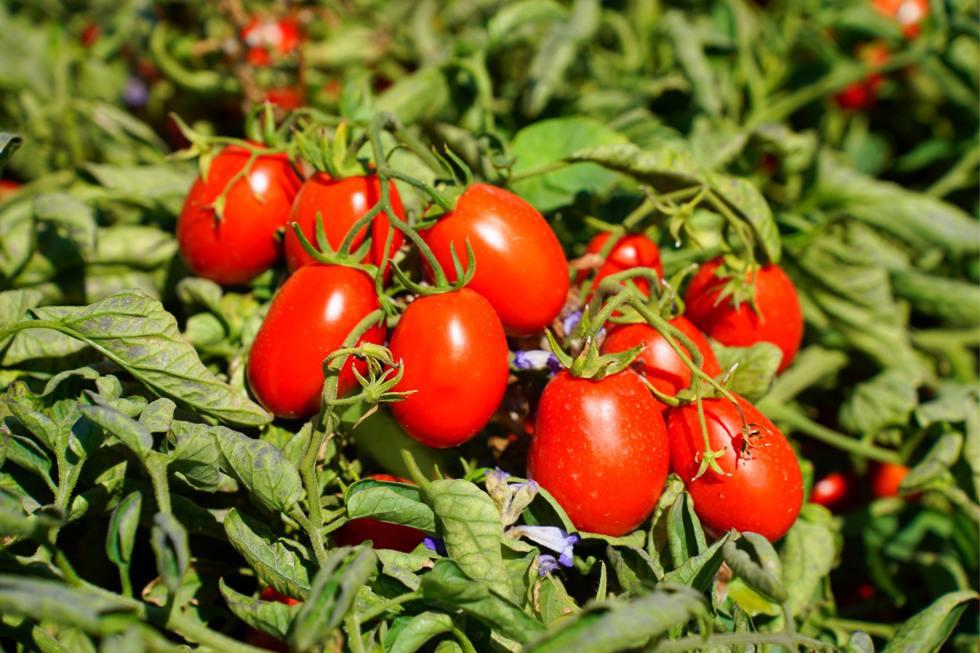 新疆吉木薩爾縣紅彤彤的番茄掛滿枝頭(吳欣昊 攝)