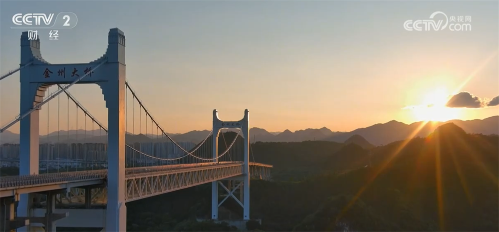 金州大橋位于貴州興義市,是貴州首座設(shè)有城市軌道交通空間與旅游觀光通道的懸索橋。“橋旁賞落日、橋上瞰山河、橋下觀飛瀑”的立體化旅游新模式,吸引了眾多游客和市民前來(lái)觀景游玩。