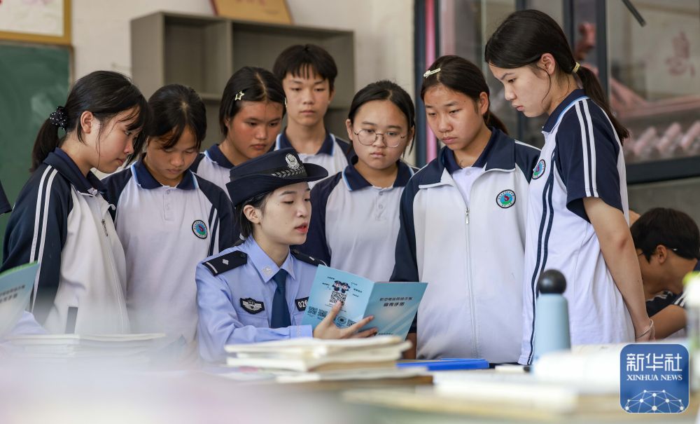 9月15日,民警在貴州省銅仁市玉屏侗族自治縣黔東民族寄宿制中學給學生普及網絡安全知識。新華社發(fā)(胡攀學攝)