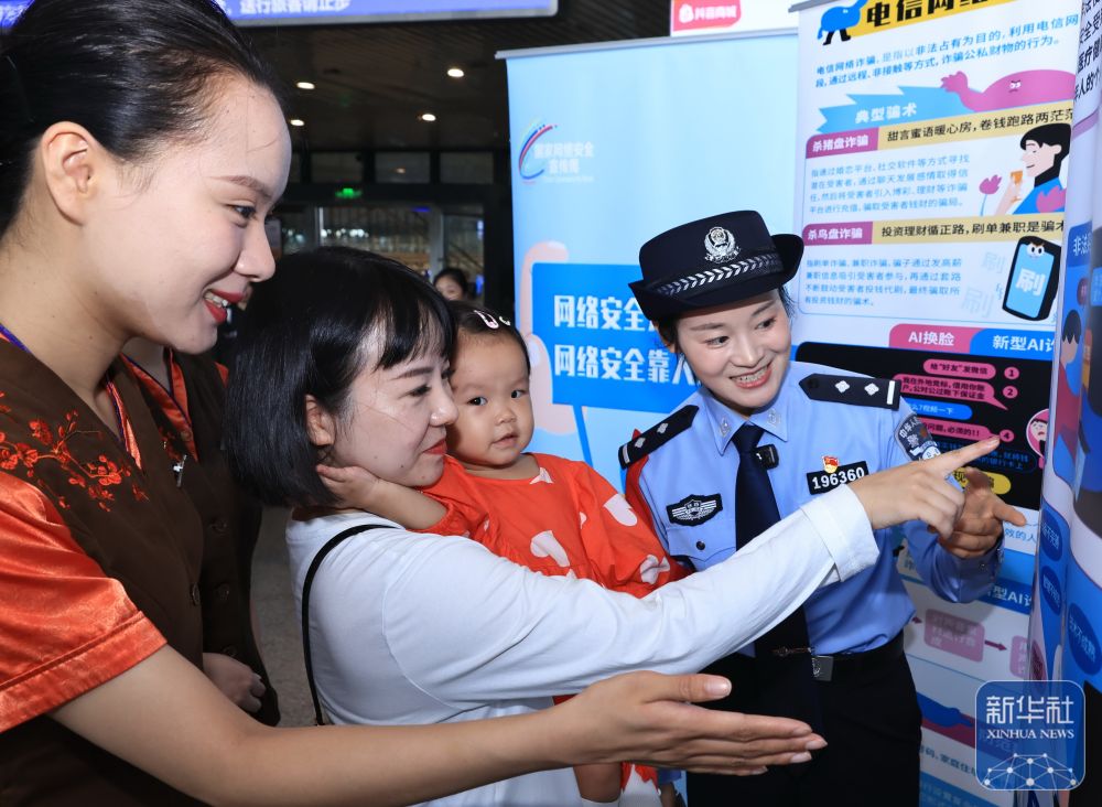 9月15日,湖北武漢鐵路公安處武漢站派出所民警在武漢站為旅客講解網絡安全知識。新華社發(fā)(趙軍攝)
